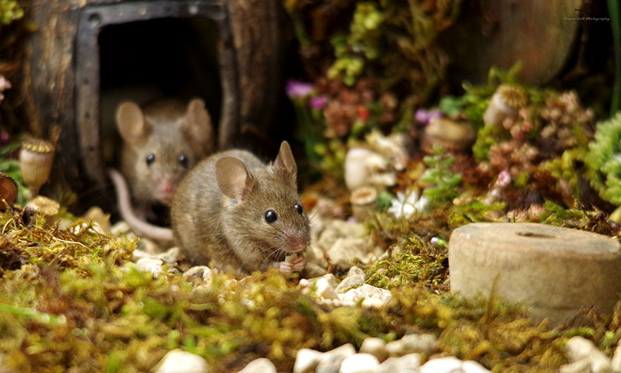 Son zamanlarda, fotoğrafçı Simon Dell, bahçesinin etrafında çalışırken bir fare ailesinin rastladı. Ancak tuzaklara kurup yakalamak yerine. Dell farelere minyatür bir köy inşa etti ve kamerasının önünde poz vererek ona bu yuvayı hediye etti.