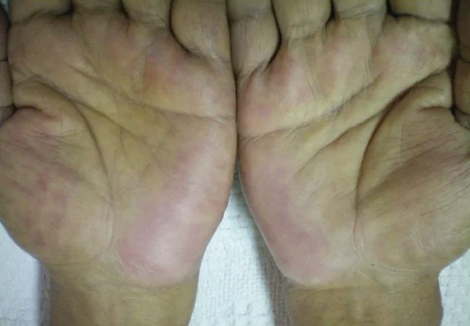 Avuç içlerinizin kırmızıya dönmesi karaciğerinizde bir sorun olduğunun işareti olabilir. Palmar erythaema olarak da bilinir. Eğer elli yaşınızı geçtiyseniz ellerinizin görünüşüne gözden geçirmeniz gerekiyor demektir. Avuç içlerinizin dış kısımlarında beliren bu kızarıklar karaciğerinizin hasar gördüğünün işaretidir ve bir doktora görünmeniz iyi olacaktır. Kırmızı avuç içleriniz kılcal damarlarınızın alması gerekenden fazla k-an alması sonucu ortaya çıkar ve hormonal bir bozukluğun göstergesi de olabilir. Eklem iltihabı da kırmızı avuç içlerine sebep olabildiğinden ihmal edilmemesi gereken bir sorundur. Eğer avuç içlerinizde kırmızılık fark ettiyseniz, doktorunuz ile görüşüp mutlaka sebebini öğrenmelisiniz. Bu sırada da daha sağlıklı bir diyete geçip alkol tüketiminizi azaltabilirsiniz. Böylece muhtemel bir sorunun önüne geçmiş olursunuz.