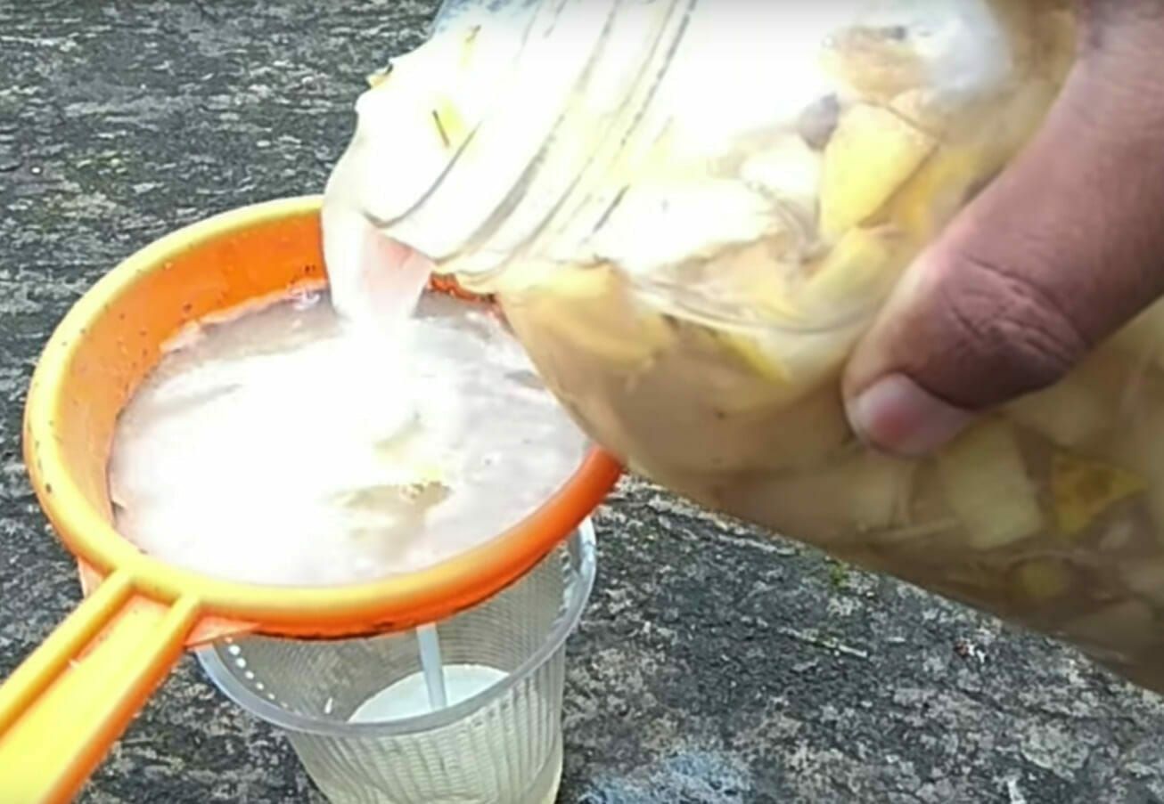 Bir hafta boyunca kenara koyun. Kabuğu muzlardan ayırmak için süzün.