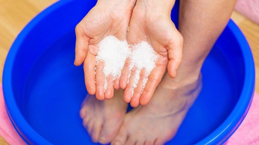 Epsom tuzu ve papatya çayı ile ayak banyosu