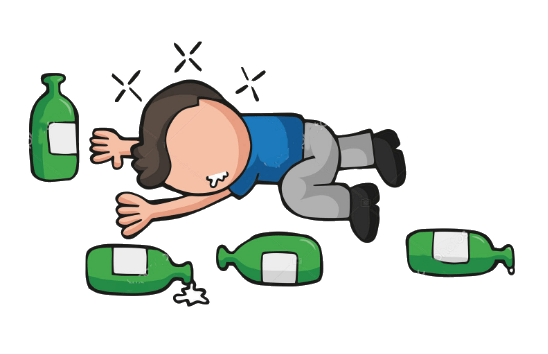 Kendinden Geçmiş Akşamdan kalma adam, büyük bir baş ağrısı ile sabah uyanmış. Zorlukla gözlerini açıp, yerinden doğrularak, şöyle bir etrafına bakınmış. Komodinin üstünde bir bardak su ve iki aspirin duruyor. Yatağı ayak ucundaki sandalyede elbiseleri temiz ve ütülenmiş.